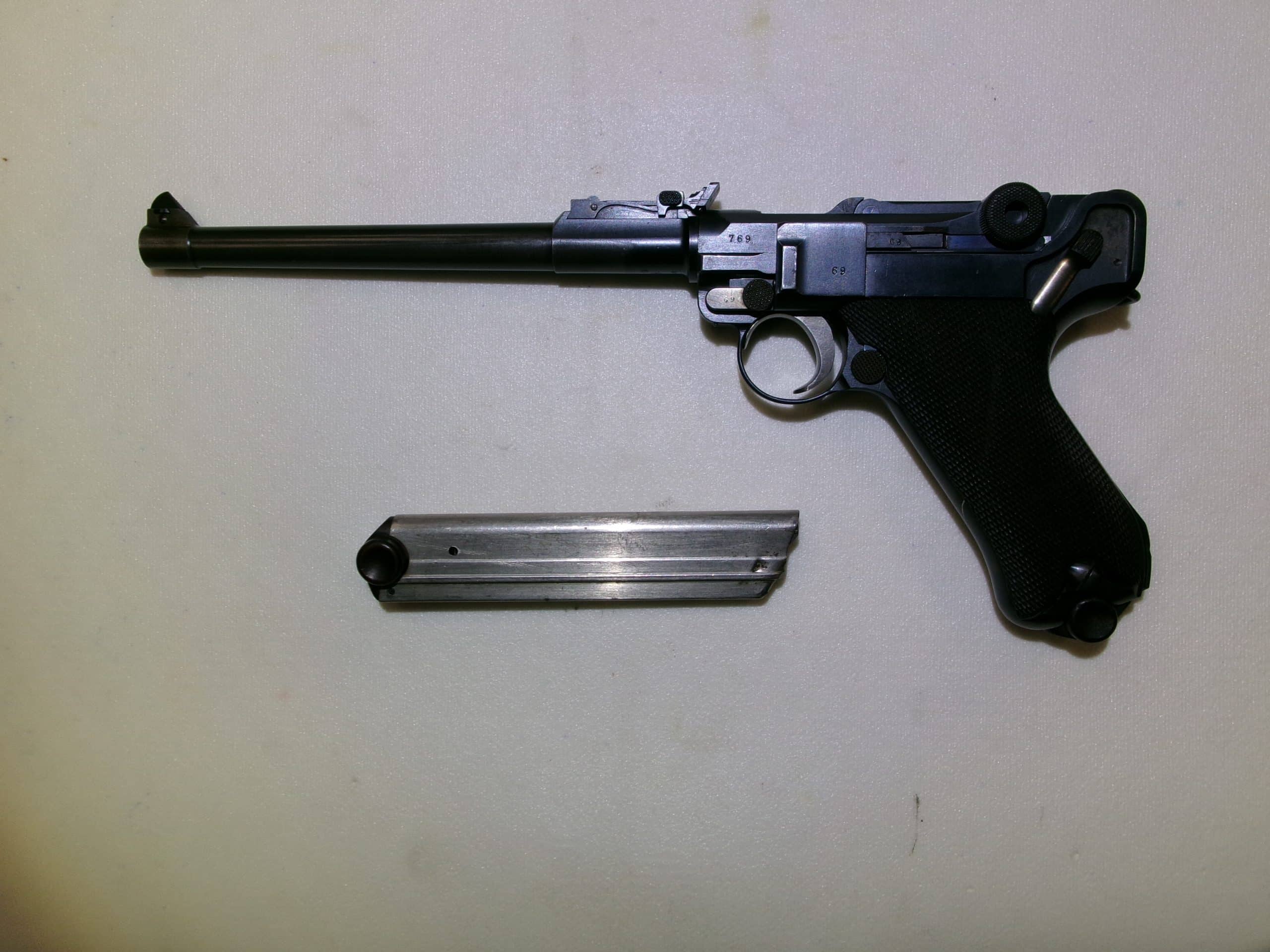 LUGER D.W.M. P08 ARTILLERY 1915 CAL. 9X21 CON DUE CARICATORI DA 8 COLPI USATA, ARMA SPORTIVA MONOMATRICOLA